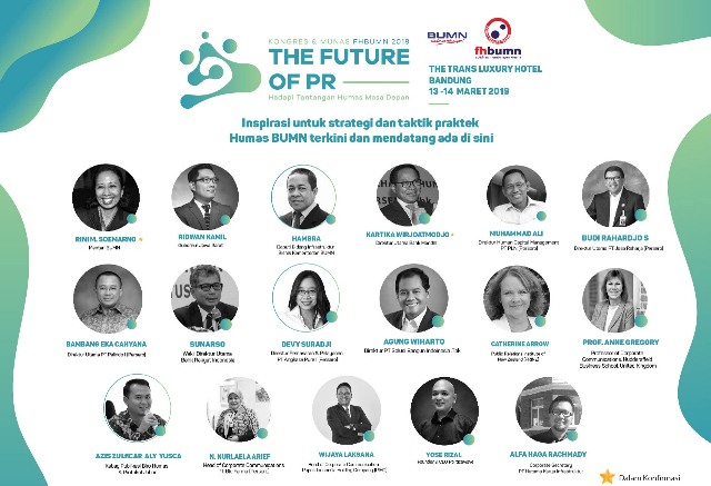 BANDUNG,POTENSINEWS.COM,-Forum Humas (FH) BUMN siap menggelar kongres dan munas dengan tema The Future of PR : Hadapi Tantangan Humas di Masa Depan, yang akan diselenggarakan pada tanggal 13-14 Maret 2019 di Hotel Trans Luxury, Bandung.